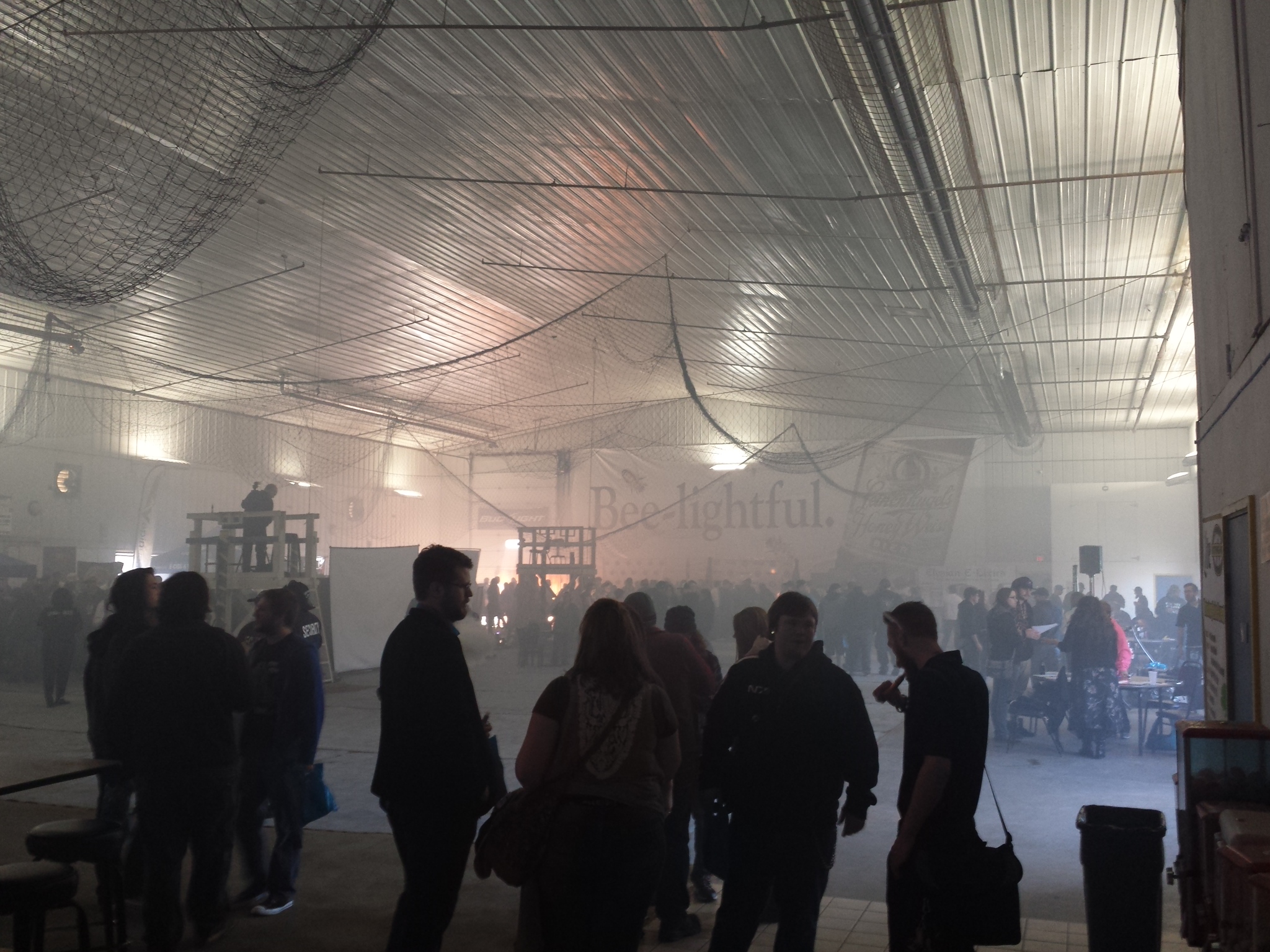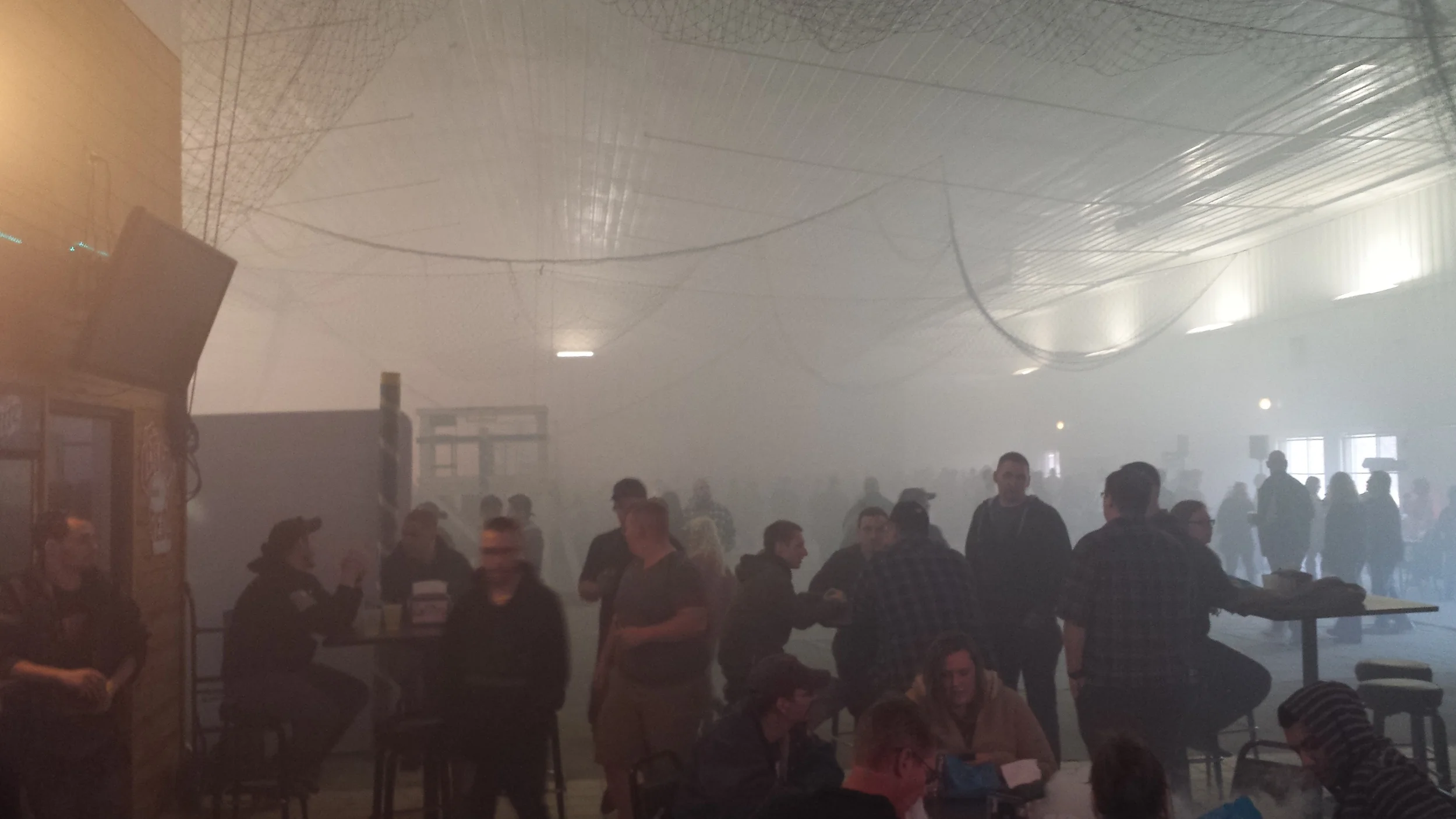 On the back wall there was a giant logo for Leinenkugel’s Beer. 10 minutes into the convention you could just barely see it through all the vapor. An hour later you couldn’t see it. When I left the vapor had peeled the decal off the wall. Here are the photos for proof.